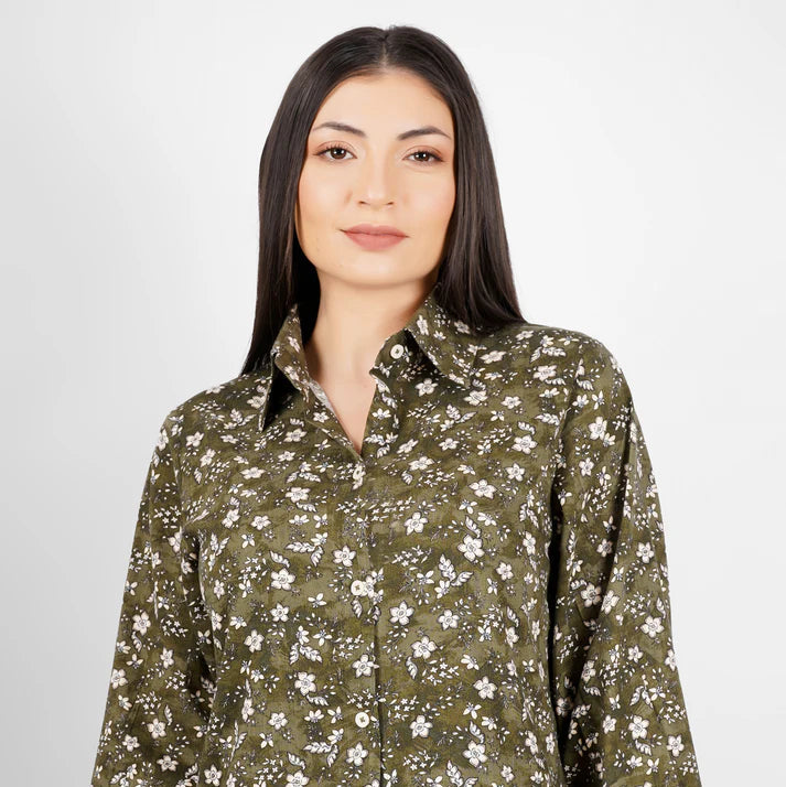 Olive Green Floral Printed Long Kurta & Trouser Kurta Set