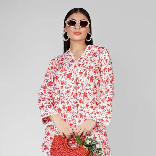 Trendy Cotton Blossom Full Sleeve Kurta Set